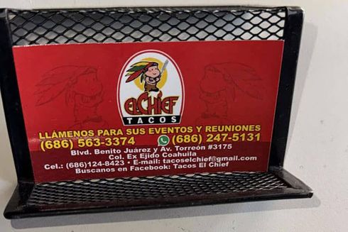 Tacos El Chief en Mexicali, Baja California, y disfruta de nuestros deliciosos tacos de guisado. Para consultas, pedidos o sugerencias, llámanos o envíanos un mensaje. Estamos listos para atenderte con rapidez y calidad, y asegurarnos de que tu experiencia sea deliciosa y satisfactoria.