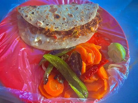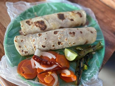 Preparamos diariamente 13 opciones de guisado con ingredientes frescos. Puedes elegir tortilla de maíz o de harina, hechas al momento para garantizar suavidad y sabor. Nuestro menú incluye opciones clásicas como machaca, bistec ranchero, birria de res, chicharrón rojo, rajas con crema y queso, pierna en salsa negra y más.